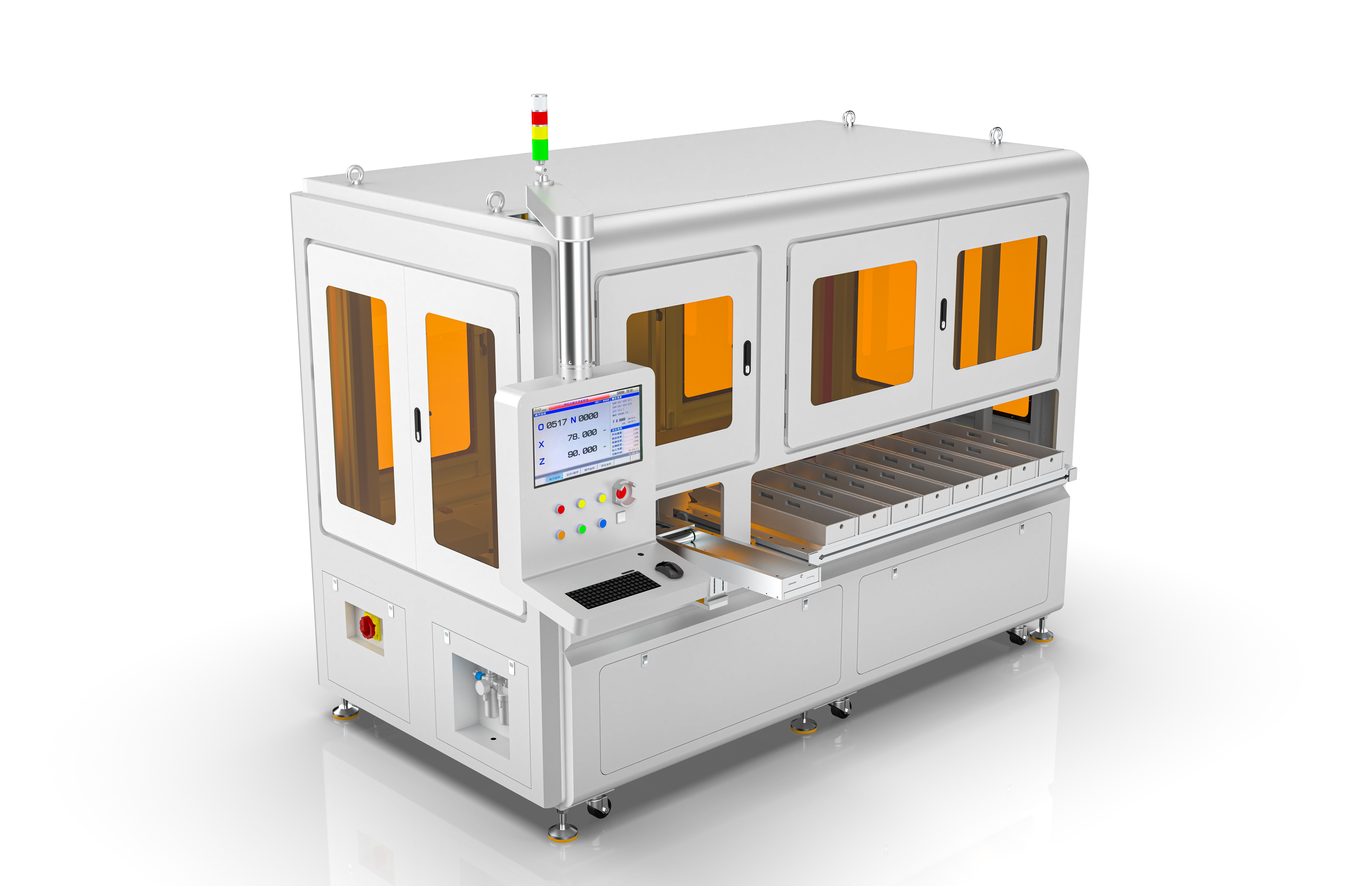 该设备由上料机构、高速读码机构、 OCV 测试机构、分档机械抓手、收料机构、MES 数据交互储存及电气控制部分等组成。该设备能将圆柱 电芯根据设定的内阻、电压值精确分选到相对应的档位输出槽内,实现不同档位的电芯分选。